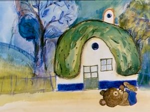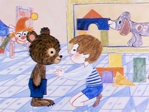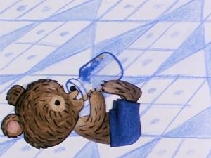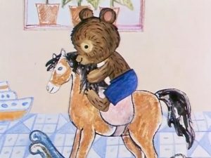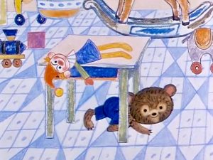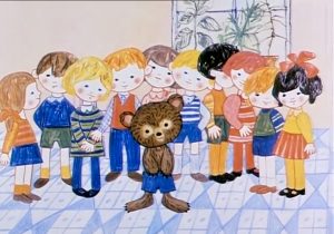 Első bébe ment az apró, oda ám, az a csöpp boglyos, lompos, loncsos és bozontos piszén pisze kölyökmackó. Rikogatva akkor, iskolás lett Vackor!